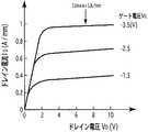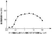 ここで、ゲート長をdGとし、ダイヤモンド単結晶薄膜2−1の表面と接している下部ソース電極2−6SBの端とゲート電極2−7Gのソース側の端との間の下部ソース・ゲート間隔をdSGBとし、ダイヤモンド単結晶薄膜2−1の表面と接している下部ドレイン電極2−6DBの端とゲート電極2−7Gのドレイン側の端との間のゲート・下部ドレイン間隔をdGDBとする。また、上部ソース電極2−6STの端とゲート電極2−7Gのソース側の端との間の上部ソース・ゲート間隔をdSGTとし、上部ドレイン電極2−6DTの端とゲート電極2−7Gのドレイン側の端との間のゲート・上部ドレイン間隔をdGDTとする。Here, the gate length is dG, lower source-gate between the source end of the edge and the gate electrode 2-7G of the lower source electrode 2-6SB in contact with the diamond single crystal thin film 2-1 of the surface the interval isd SGB,d GDB gate-bottom drain spacing between the end of the drain side end and a gate electrode 2-7G of the lower drain electrode 2-6DB in contact with the diamond single crystal thin film 2-1 of the surface And The upper source-gate distance between the end of the upper source electrode 2-6ST and the end of the gate electrode 2-7G on the source side is dSGT, and the end of the upper drain electrode 2-6DT and the gate electrode 2-7G The gate-upper drain distance between the drain side end isdefined as dGDT .