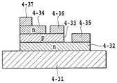 しかしながら、Au薄膜2−12をエッチングする過程で、ソース電極2−16Sおよびドレイン電極2−16Dのゲート電極2−17G側の端面に図13Eに示すような角度θがおよそ45度の逆メサ構造が生じるため、ソース・ゲート電極間隔dSG、ゲート・ドレイン電極間隔dGDは、ソース電極2−16Sの厚さtS、ドレイン電極2−16Dの厚さtDより狭くすることができないという問題があった。つまり、従来の技術では、「ソース・ゲート電極間隔、ゲート・ドレイン電極間隔を狭くすること」と「ソース電極の厚さ、ドレイン電極の厚さを厚くすること」との2つの要件を同時に満足させることができなかった。However, in the process of etching the Au thin film 2-12, the inverted mesa structure having an angle θ of about 45 degrees as shown in FIG. 13E is formed on the end surfaces of the source electrode 2-16S and the drain electrode 2-16D on the gate electrode 2-17G side. Therefore, the source-gate electrode distance dSG and the gate-drain electrode distance dGD cannot be made smaller than the thickness tS of the source electrode 2-16S and the thickness tD of the drain electrode 2-16D. was there. In other words, the conventional technology simultaneously satisfies the two requirements of “reducing the source / gate electrode spacing and gate / drain electrode spacing” and “increasing the source electrode thickness and drain electrode thickness”. I couldn't let you.