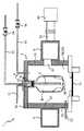 また、チャンバー3の側壁32には、チャンバー3の内部35(マイクロ波閉じ込め室M)を減圧に維持するため、図示しない吸引ポンプに繋がれた圧力調整管52が接続されており、必要に応じてマイクロ波閉じ込め室Mを所定の圧力まで減圧できるようになっている。なお、本発明にあっては1000〜100000Pa(約1/100〜1気圧(大気圧))での実施がなされるが、ボトルBが外圧で潰れることを防止するため、ボトルBの外部であるマイクロ波閉じ込め室Mは、ボトルBの内部の圧力と同じ圧力の空気とすることが好ましい。また、蓋面34にはパージ管55が接続されており、流量制御弁56を介して図示しないガス供給源(ボンベ)と繋がっており、マイクロ波閉じ込め室Mに所定のガス(原料ガスと、アルゴン、ヘリウム、ネオン等の不活性ガスや、窒素、酸素、水素、空気等)をパージすることができる。なお、これらのガス排気管51、圧力調整管52及びパージ管55には、いずれも、マイクロ波閉じ込め用の図示しないシールドが配設されている。  Further, a