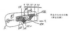 図17eに図示されたように、矢印PP2は、第2の「プッシュ」作用の力を示す。図17a〜図17fのそれぞれは、さらに、挿入プロセスと引抜きプロセスの各段階に、上述したフリッパーの異なるエレメントとデュアルピン112の正方形のエレメントと円形のレメントとの両方の相対的な位置を示す仮想の2mmの定規を有する。  As illustrated in FIG. 17e, the arrow PP2 indicates the force of the second “push” action. Each of FIGS. 17a-17f is further hypothesized to show the relative position of both the different elements of the flipper described above and the square and circular elements of the