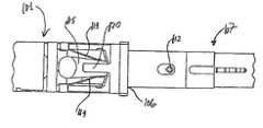 図14は、アダプタ101の内部に完全に挿入されていないコネクタ107の斜視図を図示する(外部シェルは図示しない)。この位置は、アダプタ101のインテリア106内の合わせ位置にコネクタ107を締め付けるプッシュ−プッシュプロセスの開始である。  FIG. 14 illustrates a perspective view of the