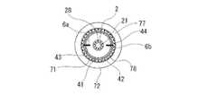 スライドチューブ7は、具体的には、図2ないし図9に示すように、スライドチューブ本体71と、その先端部に固定され、スライドチューブ本体71より外径および内径が大きい先端側筒状部材72とを備えている。そして、この実施例では、スライドチューブ7の先端側部材72は、図9に示すように、先端部74と基端部と、先端部と基端部間(具体的には、先端より若干基端側となる位置)に設けられた縮径部73を備えている。この実施例では、縮径部73は、外径および内径ともに縮径している。なお、縮径部73は、内径のみ縮径するものであってもよい。縮径部73の内径は、上述したように、先端側チューブ2の外径よりある程度大きく、リング状部材41の外径より小さいものとなっている。また、縮径部73は、所定長ほぼ同じ内径にて軸方向に延びるものとなっている。このため、牽引ワイヤの牽引時(言い換えれば、先端側筒状部材72の基端側への移動時)における先端側筒状部材72の変形を少なくし、良好な移動を可能としている。また、先端側筒状部材72の基端部は、接着剤77により、スライドチューブ本体71の先端部に固定されている。そして、リング状部材41と、スライドチューブ本体71の先端間には、樹脂リング76を配置し、接着剤77のリング状部材41への流入を防止してもよい。