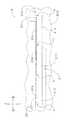 センサ本体21の左端には電極Aが、右端には電極Bが、各々取り付けられている。詳しく説明すると、電極A、Bは、共に、上下に延びる短冊状を呈しており、センサ本体21と基材フィルム200との間、およびカバーフィルム201と基材フィルム200との間に、介装されている。電極Aとコネクタ23とは導線24Aにより、電極Bとコネクタ23とは導線24Bにより、各々、結線されている。  An electrode A is attached to the left end of the sensor