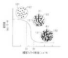 図3に示すように、エラストマー101に導電性フィラー102を混合していくと、エラストマー組成物の電気抵抗は、はじめはエラストマー101の電気抵抗とほとんど変わらない。しかし、導電性フィラー102の配合量がある体積分率に達すると、電気抵抗が急激に低下して、絶縁体−導電体転移が起こる(第一変極点)。この第一変極点における導電性フィラー102の配合量を、臨界体積分率(φc)と称す。また、さらに導電性フィラー102を混合していくと、ある体積分率から、電気抵抗の変化が少なくなり電気抵抗変化が飽和する(第二変極点)。この第二変極点における導電性フィラー102の配合量を、飽和体積分率(φs)と称す。このような電気抵抗の変化は、パーコレーションカーブと呼ばれ、エラストマー101中に導電性フィラー102による導電パスP1が形成されるためと考えられている。