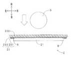 拘束フィルム部22は、ポリイミド製であって、左右方向に延びる帯状を呈している。拘束フィルム部22は、センサ本体21の基材フィルム200側と反対の表面(後面)に固定されている。センサ本体21における拘束フィルム部22との当接面は、反入力面となる。基材フィルム200および拘束フィルム部22は、本発明における拘束部材に含まれる。  The