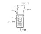 第2筐体3には、キー操作部4、及びマイク部6が設けられている。キー操作部4は、ユーザが携帯電話端末1を操作するために用いる部分である。ユーザは、キー操作部4を用いて、ダイヤル情報の入力、及び各種設定情報の入力などを行うことができる。マイク部5は、通話時に、ユーザの音声を通話相手に伝えるために設けられている。マイク部5は、ユーザの音声を集音し、電気信号に変換する。電気信号は、通話相手側の装置へ送信される。  The