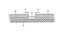 また、基板8の第7層の略全域に形成された配線パターンのうち、NANDメモリ10の隙間に対向する部分に設けられているため、スリット32部分で配線パターンの結合力が弱まる。そのため、NANDメモリ10同士の隙間に接着部31が充填されることによって生じる力(図9の矢印Xも参照)に対抗する力が弱まり、基板8の反りの発生をより一層効果的に抑制することができる。  Further, among the wiring patterns formed over substantially the entire seventh layer of the