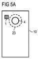 図4Aと図4Bに概略的に示されている、ポータブルエレクトロニクスデバイス10のさらなる実施例においては、光源1から作動中に生成された光11のビームパス内の対象5の検出は、光源1と画像センサ4とを含んでいる検出装置23によって行われている。この実施例では、ポータブルエレクトロニクスデバイス10が、いずれにせよ光源1と画像センサを含んでいる機器であるケースであり、さらなるセンサと受信器は完全に省かれているものである。光源1と対象5との間の間隔xの検出は、例えば画像センサ4による、光11の送信と反射光の受信との間の伝播時間の差分の検出によって行われ得る。それに対して光源1は、肉眼には知覚不能なパルス制御によって作動され得る。そのため、個々の光パルスが、送信信号21として、光11のビームパス内の対象5の検出のために用いられる。  In a further embodiment of the