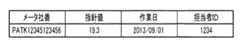 指針値データ記憶部130は、作業担当者によってガスメータから読み取られた指針値に関するデータを格納する。当該データは、一実施形態では、図5に示すようなデータである。図5における指針値データは、ガスメータを一意に示す「メータ社番」、読み取られた指針値を示す「指針値」、作業を行った日付である「作業日」、および作業担当者を一意に示す「担当者ID」を格納する。なお、「メータ社番」は、例えば、「メーカーコード」、「型式」、「号数」を組み合わせた固定長のコードである。  The guide value