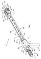 図5、図6、及び図7において見られるような保持部206が、概して、整列体214、駆動リンク213、第1アーム207、及び第2アーム208を含み、付属の係合部材216が第1アーム207及び第2アーム207の遠位部に定置される。保持部206は、第1アーム207及び第2アーム208が、それぞれ、駆動リンク213が遠位方向又は近位方向に移動せしめられると、手術器具10の中間線に向かう方向に移動し且つその後に中間線から離れるように移動することを可能とするように構築される。  The holding