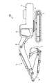 運転席9の左右側部には、作業機レバー18、19がそれぞれ設置されている。作業機レバー18、19は、ブーム5の上下動、アーム6およびバケット7の回動、ならびに上部旋回体3の旋回操作等を行うものである。さらに、作業機レバー18の近傍にはロックレバー20が設けられている。ここで、ロックレバー20とは、作業機4の操作、上部旋回体3の旋回、および下部走行体1の走行等の機能を停止させるためのものである。すなわち、ロックレバー20の引き上げ操作を行うことによって、作業機4等の動きをロック(規制)することができる。ロックレバー20によって作業機4等の動きがロックされた状態では、操作者が作業機レバー18、19等を操作しても、作業機4等が動作しない。  Work machine levers 18 and 19 are installed on the left and right sides of the driver's