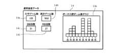 情報表示装置3は、ボーナスゲームが発生すると、図10に示すボーナス画面データに切替表示する。このボーナス画面データでは、今回のボーナスゲームにおける現在の獲得枚数(差数)14f、チェリー入賞回数14g、外れ回数14hをそれぞれ表示する。対応した入賞回数(外れ回数)が一度も発生していないものについては0が表示されている。メッセージ欄14iには、現時点でどうなれば連荘率が高くなりそうかを教示するメッセージを表示する。図10に示す例では、BB状態中の現在のチェリー回数が0回、外れ回数が0回であり、図9の連荘対応画面データに示すように、BB状態中チェリー回数が1回、BB状態中外れ回数が1回の場合の連荘率が高いことから、チェリー入賞又は外れが後1回発生すれば連荘率が高くなることを示唆するメッセージを表示する。又、BB状態中の現在のチェリー回数が1回の場合は、外れが発生すれば連荘率が高くなることを示唆するメッセージを表示する。従って、遊技者は、ボーナスゲーム中においては、表示されたメッセージで示唆された状態となれば連荘が発生すると思い、遊技に熱中するようになる。