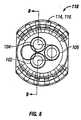 上記ノズルは、キャップをさらに備え、このキャップは、上記マニホルドの遠位端部分の外部表面とこのキャップの内部表面との間にチャネルを規定するような様式で、このマニホルドの遠位端部分に作動可能に接続される。少なくとも一つの排出ポートは、上記チャネルと連絡する、少なくとも一つの第3の排出ポートを備え得る。 The nozzle further includes a cap that is disposed on the distal end portion of the manifold in a manner that defines a channel between the outer surface of the distal end portion of the manifold and the inner surface of the cap. Operatively connected. At least one exhaust port may comprise at least one third exhaust port in communication with the channel.