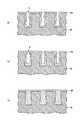 次に、活性化ガスインジェクタ220のガス導入ノズル34からO2/Arガスに加えてCHF3ガスを供給し、ウエハWの回転を更に継続することにより、図8A(a)から(d)を参照しながら説明したSi含有ガスの吸着、O3ガスによるSi含有ガスの酸化、及び酸化シリコン膜の改質を繰り返す。この場合には、堆積された酸化シリコン膜62が改質されるとともに、電極36a、36b間に供給される高周波によりCHF3ガスが活性化されるため、酸化シリコン膜62、63がエッチングされる。すなわち、第1のステップにおいては、酸化シリコンの堆積とエッチングとが、堆積速度>エッチング速度となるように同時に行われる。また、このとき、CHF3ガスの供給量、真空容器1内の圧力、高周波電力などの成膜条件は、酸化シリコン膜のエッチング速度が、スペースSの開口付近で大きく、スペースSの底部側で小さくなるように(換言すると、酸化シリコン膜の堆積速度が、スペースSの開口付近で遅く底部側で速くなるように)設定される。このような条件は、予備実験等から予め決定することができる。そのような条件によれば、スペースSの開口が酸化シリコンで塞がれることなく、酸化シリコンの堆積が継続される。(First step)