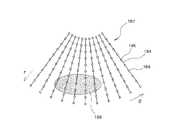 図21には実空間内におけるビームデータ列182が示されている。ビームデータ列182は複数のビームデータ184により構成され、各ビームデータ184は  複数のデータすなわち画素186により構成される。符号188は生体内に存在する組織を表している。図示されるように、ビームデータ列182において深い領域ではビーム間隔が広がっており、実画素の密度が低下している。  FIG. 21 shows a