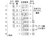 図3を参照すると、入力データの一部が直接、シャッフル回路に入力され、残りの入力データが1段目の遅延回路を介してシャッフル回路に入力されている。シャッフル回路の出力の一部が直接、出力データとなり、残りの出力データが2段目の遅延回路を介して出力データとなっている。 Referring to FIG. 3, part of the input data is directly input to the shuffle circuit, and the remaining input data is input to the shuffle circuit via the first-stage delay circuit. Part of the output of the shuffle circuit is directly output data, and the remaining output data is output data via the second-stage delay circuit.
