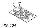 キャリアモールド1120は、キャリアモールド1120内の所望のアレイ配列で配置された窪み又は凹部などの電極配置用特徴部1125を含むことができる。電極配置用特徴部1125は、電極1100を予め設定した配列で位置付ける役に立つ。例えば、キャリアの製造工程中に電極1100の形状に対応してこれを適所に保持する窪みを底部に有するキャリアモールド1120内に電極1100を配置することができる。電極1100は凹形とすることができ、キャリアモールド1120は、電極1100の凹形状に対応する窪みを有することができる。電極1100の側面の少なくとも一部は、キャリアモールド1120内に露出されたままであることが好ましい。  The