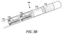 リード本体110上には、あらゆる数の分割電極130をあらゆる数の組で配置することができる。図1及び図2には、2つの分割電極の組を含む実施形態を示している。これらの2つの分割電極130の組を異なる構成で配置することができる。図3は、複数の分割電極を有するリードの第3の実施形態の概略斜視図である。図3Aのリード本体110は、近位端及び遠位端を有する。図3Aから分かるように、2つの分割電極130の組が、リード本体110の遠位端上の2つのリング電極120の遠位に配置されている。図3Bは、リード本体110の第4の実施形態の概略斜視図である。図3Bでは、2つの分割電極130の組が、2つのリング電極120の近位に配置されている。分割電極130の場所を変えることにより、異なる標的ニューロンの範囲を選択することができる。例えば、神経標的がリード本体110の遠位端の方に近くなると医師が予想する場合には、図3Aの電極配列を有用とすることができ、神経標的がリード本体110の近位端の方に近くなると医師が予想する場合には、図3Bの電極配列を有用とすることができる。少なくともいくつかの実施形態では、リング電極120が分割電極130の組と交互になる。  Any number of divided
