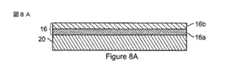 プロセス80はブロック86において続き、支持構造、たとえば、図1、図6および図8Cに示すポスト18の形成を伴う。ポスト18の形成は、支持構造開口を形成するために犠牲層25をパターニングすることと、次いで、PVD、PECVD、熱CVD、またはスピンコーティングなど、堆積方法を使用して、ポスト18を形成するために開口中に材料(たとえば、ポリマまたは無機材料、たとえば、酸化ケイ素)を堆積させることとを含み得る。いくつかの実装形態では、犠牲層中に形成された支持構造開口は、ポスト18の下側端部が図6Aに示すように基板20に接触するように、犠牲層25と光学スタック16の両方を貫いて、下にある基板20まで延在することがある。代替的に、図8Cに示すように、犠牲層25中に形成された開口は、犠牲層25は通るが、光学スタック16は通らないで、延在することがある。たとえば、図8Eは、光学スタック16の上側表面と接触している支持ポスト18の下側端部を示している。ポスト18、または他の支持構造は、犠牲層25上で支持構造材料の層を堆積させることと、犠牲層25中の開口から離れて配置された支持構造材料の部分をパターニングすることとによって形成され得る。支持構造は、図8Cに示すように開口内に配置され得るが、少なくとも部分的に、犠牲層25の一部分の上で延在することもある。上述のように、犠牲層25および/または支持ポスト18のパターニングは、パターニングおよびエッチングプロセスによって実行され得るが、代替エッチング方法によっても実行され得る。