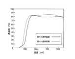 図4に第1の透明電極42(実線)と第2の透明電極44(破線)の透過率スペクトルを示す。第2の透明電極44は、第1の透明電極42よりも光吸収端が短波長側に位置していることが確認された。これは、第2の透明電極44の方が第1の透明電極42に比べ、バンドギャップが大きく、光透過性が高いことを意味している。第2の透明電極44が高い光透過性を有することにより、p電極全体としての透過率が向上し、光反射層14に向かう光や光反射層14で反射されて光取り出し面に向かう光の減衰を抑制することができ、光取り出し効率が向上する。  FIG. 4 shows transmittance spectra of the first transparent electrode 42 (solid line) and the second transparent electrode 44 (broken line). It was confirmed that the light absorption edge of the second