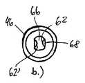 誘導エレメント46中に挿入されると、保持手段60のクランプ部分62、62’は、開口部66の対応する平面の表面68を有するピストンロッド28の平らな外面50の機械的協力、特に係合のおかげで、トルクに耐えるような形で軸方向にピストンロッド28がその中に誘導されそして保持される開口部66中に、それらの各々の凸状のワイヤ部分を用いて突き出す。これは、図3aの矢印IIIに記載の近位端からの正面図である図3bにおいて最もよく見られる。  When inserted into the