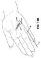 図2Gとその後の図面において、修復の説明を補助するために(複数の)腱断端の長さが誇張されている場合がある。しかしながら、腱が元の創傷部位に引き出されるか、またはその近くに引き出された後(図2Gのように)、特に指が開いている(つまり、曲げられていない)状態にある場合に、皮膚の外側に露出する腱はほとんど、または全くないことは理解されるであろう。実際、指が曲げられていない場合、外科医は、おそらくは、もっぱら皮膚内で腱を処置している。しかしながら、図面のいくつかにおいて、これらの方法およびこれらの方法に関連して説明した装置の図解をわかりやすくするために、(複数の)腱断端の(複数の)長さを誇張している場合がある。さらに、縫い目がこれに関連して説明する特徴に実質的に関係していない図面のいくつかにおいて、縫い目および/または結び目は、図面を過度に複雑にしないために、単純な十文字パターンで表されている。縫い目または結び目が説明する特徴により密接に関係している他の図面では、適切な結び目/縫い目のより正確な表現が示されている。 In FIG. 2G and subsequent drawings, the length of the tendon stump (s) may be exaggerated to assist in the description of the repair. However, after the tendon has been withdrawn to or near the original wound site (as in FIG. 2G), especially when the finger is open (ie, unbent) It will be understood that there are few or no tendons exposed to the outside. In fact, if the finger is not bent, the surgeon is probably treating the tendon exclusively in the skin. However, in some of the drawings, the length (s) of the tendon stump (s) have been exaggerated to make it easier to understand the illustration of these methods and the devices described in connection with these methods. There is a case. Further, in some of the drawings where the seams are not substantially related to the features described in this context, the seams and / or knots are represented in a simple cross pattern to avoid overcomplicating the drawings. ing. In other drawings, where the seams or knots are more closely related to the features described, a more accurate representation of the appropriate knot / seam is shown.