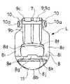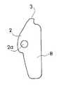 また、支持部2における第一通しスロット4と第三通しスロット1bの間に位置される箇所に、この支持部2を内外に貫通する軸穴2aが形成されている。  Further, a