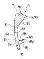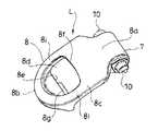 また、通し部8dにおける操作部8の延びだし方向に直交する向きに沿った二箇所の穴縁部8e、8fのうち、前記組み合わせ部7、すなわち、操作部8の延び出し基部1側に位置される穴縁部8fは、この組み合わせ部7側を湾曲外側とするように湾曲されている。  Of the two