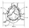 図14は、角度をつけられた側部フラップ(図10中の参照符号62)がいかに弁尖60a−cを中心軸110に沿って接合させるかを示す。血流逆圧を受けて、弁尖は、重複接合を有して共にしっかりと閉じられる、留意される。  FIG. 14 shows how angled side flaps (