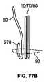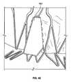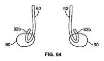 これより本発明に従った人工心臓弁の構成において重要であり得る他の考察を参照すると、弁尖60がカフ材料80を通って固定されるとき、カフ/縫合/弁尖の摩滅を導き得る低減された運動を有する弁尖の耐久性のある固定を確実なものとすることは、望ましいとされる。カフ80の終了(Termination  of  a  cuff)は(特には、ステントが、本願における複数の実施例において参照符号50で示されるように外方向に広がるとき)、困難であり得る。図65及び複数のその後の図は、かかる問題に対処する支援をし得る構造を示す。  Referring now to other considerations that may be important in the construction of a prosthetic heart valve according to the present invention, when the
