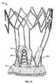 図28は、ポスト20の下方部においてアイレット22を排除するためのステント設計の他の変形を示す。弁尖フラップ62をポストに対して取り付けるための開口がない場合、弁尖フラップは、この下方部分の長さに沿って、並びに/あるいは拡張可能なステント部を取り囲むカフ材料を介して、共に縫合され得る。  FIG. 28 shows another variation of the stent design to eliminate the