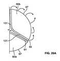 図20a−bは、単一の弁尖60の3D図である。図20aは上部断面図であり、図20bは側部断面図である。矢印は、弁尖フラップ62/64が1つの代表的な弁尖60bに対して弁尖OD上へと戻るよう折り曲げられる場所を示す。図12a−bにおいて示される巻戻し設計は、この設計において単にポストに沿う代わりにエッジ67/69全体に沿って延在することを除いては類似している、とことが留意される。  20a-b are 3D views of a