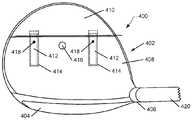 様々なゴルフクラブヘッドおよびゴルフクラブ製品が、ゴルフボールとのインパクト時にゴルファーがクラブヘッド面をスクエアに当てることを支援することによってゴルファーの精度を改善するように設計されている。たとえば、多くのゴルフクラブヘッドは、クラブヘッドの重心の位置を変える、および/またはクラブヘッドの慣性モーメント(たとえば、ねじれに対する抵抗)を増すために、戦略的に配置されたウェイトを有する。クラブヘッドの重心の位置およびインパクト時のそのねじれの程度は、ゴルフボールが打たれたとき所期の方向に推進されるかどうかを少なくとも部分的に決定する要因である。重心が接触面上のボールの係合点よりも後方に配置され、クラブヘッドが所期の標的線に対してスクエアである場合、ゴルフボールは一般にまっすぐな経路をたどる。しかし、重心がボールの係合点の片側に離れている、および/またはクラブヘッドがインパクト時にスクエアではない場合、ゴルフボールは、左または右にカーブする経路をたどることができる、または単に左または右に飛ぶことができ、ボールの飛びは、多くの場合、「ドロー」、「フェード」、「フック」、「スライス」、「プル」または「ブロック」と呼ばれる。同様に、クラブヘッドの重心がボールとの係合点の上方または下方に離れている場合、ゴルフボールの飛びは、それぞれ、より風を切り裂く(boring)軌道または浮き上がる軌道を示すことができる。ゴルフボールを正しくかつ一貫した繰り返し精度で打つことは、特に初心者、若者またはたまにしかプレーしないレクリエーションプレーヤにとっては非常に達成しづらく、いらだたしいものになる。 Various golf club heads and golf club products are designed to improve the accuracy of the golfer by assisting the golfer in placing the club head surface against the square upon impact with the golf ball. For example, many golf club heads have strategically positioned weights to change the position of the club head's center of gravity and / or increase the club head's moment of inertia (eg, resistance to twisting). The location of the center of gravity of the club head and its degree of twist upon impact are factors that at least partially determine whether the golf ball is propelled in the intended direction when it is struck. When the center of gravity is located behind the point of engagement of the ball on the contact surface and the club head is square with respect to the intended target line, the golf ball generally follows a straight path. However, if the center of gravity is separated to one side of the ball's engagement point and / or the club head is not square upon impact, the golf ball can follow a path that curves to the left or right, or simply left or right The ball flight is often referred to as “draw”, “fade”, “hook”, “slice”, “pull” or “block”. Similarly, if the club head's center of gravity is far above or below the point of engagement with the ball, golf ball flight can indicate a more boring or rising trajectory, respectively. Striking a golf ball with correct and consistent repeatability can be very difficult and annoying, especially for beginners, young people, or recreational players who only play occasionally.