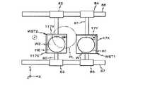 なお、一対のX軸リニアモータ84,85(又は82,83)がそれぞれ発生する推力を僅かに異ならせることで、ウエハステージWST1(又はWST2)のヨーイングの制御が可能である。  It should be noted that yawing of wafer stage WST1 (or WST2) can be controlled by making the thrust generated by the pair of X-axis