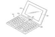 他の例として、大韓民国公開特許公報第1998−28435号(折畳可能なキーボードを有するポータブルコンピューター)と大韓民国公開実用新案公報第1999−001643号(ポータブルコンピューターの折畳式キーボード構造)には折畳式構造を通じてキーボードの大きさを拡張させることができるキーボードが開示されている。上記公開技術で提示しているキーボードは、キーボードを構成する部分を互いに折畳んでおいて広げて使用するようにする折畳構造を採用している。しかし、このような構造はキーボードを折畳んだ時全体厚さが厚くなるためポータブルコンピューターを薄型に製作し難い問題点がある。 As another example, Korean Patent Publication No. 1998-28435 (portable computer having a foldable keyboard) and Korean Utility Model Publication No. 1999-001643 (foldable keyboard structure of portable computer) are folded. A keyboard that can expand the size of the keyboard through a formula structure is disclosed. The keyboard presented in the above-described open technology adopts a folding structure in which parts constituting the keyboard are folded and spread for use. However, such a structure has a problem that it is difficult to make a portable computer thin because the entire thickness increases when the keyboard is folded.