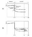 図1Aでは、充放電を100サイクル行った電池の充電波形を破線で、充放電を300サイクル行った電池の充電波形を実線で示す。なお、破線および実線で示される充電波形において、閉回路状態から開回路状態への遷移時に生じる急激な電圧降下は、それぞれ100サイクル劣化時の直流抵抗成分および300サイクル劣化時の直流抵抗成分によるものである。また、図1Bでは、充放電を300サイクル行った電池の充電波形を実線で、
