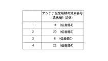 続く工程S105では、S104における識別結果に基づき、アンテナ設定対リストの更新を行う。通信品質閾値を基準に作成した図15のアンテナ設定対リストの場合、例えば、サイドローブ起因と識別した設定対をリストから除外し、図17のように更新すればよい。もしくは、サイドローブ起因と識別した設定対の優先順位を下げ、図18のように更新してもよい。備蓄上限数を基準に作成した図16のアンテナ設定対リストの場合には、前述のように本来備蓄されるべき設定対が除外されている場合もある。そこで、図14のアンテナ設定対を通信品質順に整列した表を再度読み出し、その表において、サイドローブ起因設定対の除外、もしくは優先順位の調整を行った後、備蓄上限数の設定対で構成されたリストを作成すればよい。これらの処理は、処理・演算回路406、506で行えばよい。更新したアンテナ設定対リストは、記憶回路408、508へ格納すればよい。  In subsequent step S105, the antenna setting pair list is updated based on the identification result in S104. In the case of the antenna setting pair list of FIG. 15 created based on the communication quality threshold, for example, the setting pair identified as the side lobe origin may be excluded from the list and updated as shown in FIG. Alternatively, the priority of the setting pair identified as the side lobe origin may be lowered and updated as shown in FIG. In the case of the antenna setting pair list of FIG. 16 created based on the upper limit number of stockpiling, the setting pairs that should be stocked may be excluded as described above. Therefore, the table in which the antenna setting pairs in FIG. 14 are arranged in order of communication quality is read again, and after the side lobe-derived setting pairs are excluded or the priority order is adjusted in the table, the table is composed of setting upper limit number pairs. You can create a list. These processes may be performed by the processing /