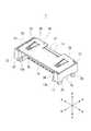 カバー20の装着時、左右固定板部22,23の下部は左右側壁部12,13の下面側に突出する。左右固定板部22,23の下部にはそこを前・中・後の3つの金属片に分ける2本のスリット24を設け、2本のスリット24間にある中央金属片が係止片25となり、2本のスリット24の前後にある前後金属片が2本のカバー端子部26となる。  When the