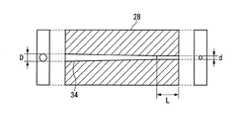 貫通孔34の、円筒状編紐12の入り口側の内径Dは、熱処理前の円筒状編紐12の外径D’と等しいか、若干大きく、円筒状編紐12の出口側の内径dは、熱処理後の円筒状編紐12の外径d’と等しい。