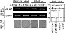さらに、ZNF224遺伝子を特異的に標的とする低分子干渉RNA(siRNA)により、細胞増殖を抑制することができる。このように、本明細書に記述された新規なsiRNAは、抗がん医薬の開発のための有用な標的である。 Furthermore, cell growth can be suppressed by small interfering RNA (siRNA) that specifically targets the ZNF224 gene. Thus, the novel siRNA described herein is a useful target for the development of anticancer drugs.