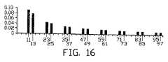 図16の棒グラフは、分岐したY構造の変圧器72を有する六相RCSIシステムによって出力された電流の高調波部分の相対的な大きさの分布を表す。電流高調波は式(2)から計算することができ、六相RCSIシステムに対して定義する場合、φは6と等しく、nが製数列11、13、23、25…95及び97と等しい。六相RCSIシステムのTHDは、式(4)から15パーセントよりも小さいことが計算できる。  The bar graph of FIG. 16 represents the relative magnitude distribution of the harmonic portion of the current output by the six-phase RCSI system having a branched Y-