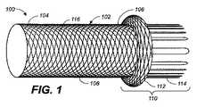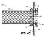 さらに、密封スリーブ114を形成するプロセスは、リング部材180の外周に配置されたポスト182に関して説明されているが、ポスト(例えば、182)は、代替的に、リング部材の内周上に、またはリング部材180の周囲の他の場所に配置することができる。内周に配置する場合、管状部材102は、リング部材180の左側に動き始めることができ、フィラメント150は、リング部材180の外周に巻き付けて、ポスト上に引っ掛けることができる。これは、フィラメントの180°の屈曲をもたらす。次いで、管状部材102は、リング部材の中央を通過し、それによって、管状部材102がリング部材の反対側に存在し、フィラメント150がさらに180°屈曲する。当業者は、密封スリーブを形成する方法の可能な変形例を認識するであろう。  Further, although the process of forming the sealing
