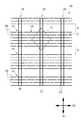 ここで、上部電極20と下部電極40とが重ねられた状態では、上部電極20の第一方向間隙S1の位置に第二方向交差帯42(図3も参照)が配置され、下部電極40の第二方向間隙S2の位置に第一方向交差帯21(図2も参照)が配置される。すなわち、上部電極20の第一方向交差帯21は、下部電極40にそれぞれ形成された第一方向平行帯41及び第二方向間隙S2の合計の幅と等しいピッチで配列され、下部電極の第二方向交差帯42は、第一電極20にそれぞれ形成された第二方向平行帯22及び第一方向間隙S1の合計の幅と等しいピッチで配列されている。
