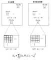 以下の説明において、劣化画像i(x,y)は手振れによって発生するものとし、「ブレ」とは手振れによるぼやけを意味するものとする。ブレのない画像(理想画像)の輝度分布をs(x,y)とし、ブレを規定する点広がり関数(PSF)」をf(x,y)とする。f(x,y)は、露光中におけるカメラの軌跡に基づいて決定される。露光中にカメラが移動することにより、理想画像に含まれる1つの画素における像(点像)は、劣化画像においては複数の周辺画素に広がった像となる。図2は、理想画像における点像が、劣化画像においてぶれた像になっている様子を例示している。このようなブレは、全ての点像において等しく生じる(shift−invaliant)とすると、f(x,y)は、ある点像からその点像を原点とする相対座標(x,y)に位置する周辺画素にどのような重みでその点像が広がるかを表す関数であると言える。本明細書において、f(x,y)は、−m≦x≦m、−n≦y≦n(m,nは1以上の整数)でのみ有限の値を持つ関数とする。言い換えれば、手振れによって理想画像における1つの点像にブレが生じる範囲は、(2m+1)×(2n+1)のサイズを有する矩形領域内に含まれるとする。i(x,y)、s(x,y)、f(x,y)について、ノイズの影響を無視すれば、以下の式1が成立する。