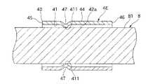 図4、図5に示すように、金型9を型締めした際、当該金型9のテーパ部911(キャビティ91を画成する壁部)と造影マーカ4Cの外周面44との間には、間隙(外周側間隙)42bが形成される。  As shown in FIGS. 4 and 5, when the