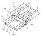 第1基板1の表面には、図3(a)に示すように、略台形状の第1溝(導波路形成用溝)1aと、第1溝1aよりも深い略V字形状の第2溝1bが前後方向に連なって形成されている。  On the surface of the