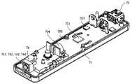 次に、図5および図6を参照して、コントローラ7の内部構造について説明する。なお、図5は、コントローラ7の上筐体(ハウジング71の一部)を外した状態を後面側から見た一例を示す斜視図である。図6は、コントローラ7の下筐体(ハウジング71の一部)を外した状態を前面側から見た一例を示す斜視図である。ここで、図6に示す基板700は、図5に示す基板700の裏面から見た状態となっている。  Next, the internal structure of the