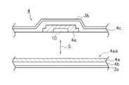 図2に示すように、ICタグ収容部4は、ICタグ10を取り囲むように、電波遮蔽層4aを有すると共に、電波遮蔽層4aの表面3b側には、この電波遮蔽層4aを覆うようにプラスチック層4cが形成されている。