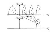 4値NANDメモリは、1つのメモリセルにおける閾値電圧が、4通りの分布を持ち得るように構成されている。図7は、4値NANDセル型フラッシュメモリのメモリセルに記憶される2ビットの4値データ(データ“11”、“10”、“01”、“00”)とメモリセルの閾値電圧分布との関係を示している。なお、図7において、VA、VB、VCは4つのデータを読み出す場合に選択ワード線に印加される電圧であり(電圧VAは0Vである)、VAV、VBV、VCVは、各閾値電圧分布への書き込みを行う場合において、書き込みが完了したかどうかを確認するために印加されるベリファイ電圧を示している。また、Vreadは、データの読み出しを行う場合に、NANDセル中の非選択メモリセルに対し印加され、その保持データに拘わらず当該非選択メモリセルを導通させる読み出し電圧を示している。さらに、Vevは、メモリセルのデータを消去する場合において、その消去が完了したか否かを確認するためメモリセルに印加される消去ベリファイ電圧であり、負の値を有する。Vevの大きさは、隣接メモリセルの干渉の影響を考慮して決定される。上述の各電圧の大小関係は、Vev<VA<VAV<VB<VBV<VC<VCV<Vreadである。The four-value NAND memory is configured such that the threshold voltage in one memory cell can have four distributions. FIG. 7 shows 2-bit quaternary data (data “11”, “10”, “01”, “00”) stored in the memory cell of the quaternary NAND cell type flash memory and the threshold voltage distribution of the memory cell. Shows the relationship. In FIG. 7, VA , VB , and VC are voltages applied to the selected word line when reading four data (the voltage VA is 0 V), and VAV , VBV , and VCV Indicates a verify voltage applied to check whether writing is completed when writing to each threshold voltage distribution. Further, Vread indicates a read voltage that is applied to an unselected memory cell in a NAND cell when data is read and makes the unselected memory cell conductive regardless of the retained data. Further, Vev is an erase verify voltage applied to the memory cell in order to confirm whether or not the erase is completed when erasing the data in the memory cell, and has a negative value. The magnitude of Vev is determined in consideration of the influence of interference between adjacent memory cells. Magnitude of each voltage described aboveisVev <V A <V AV < V B <V BV <V C <V CV <Vread.