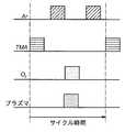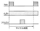 別の実施形態では(図3のタイミング図に概略的に示す)、前駆体材料(この例ではTMA)は不活性ガスとともにガス混合物中にパルス的に供給され、反応剤(酸素)は不活性ガス混合物中に(アルゴンとともに)連続的に供給され、即ち、処理空間5に挿入されるガス混合物は反応剤を継続的に含み、前駆体は不連続的に付加されることになる。この実施形態は、前駆体と反応剤が気相で互いに反応しない、又は実質的に反応しない場合に実現可能である。この実施形態では、ガス供給法が第1の実施形態よりもいくらか簡単である。この方法では、過剰な材料及び反応生成物は、前駆体材料の各パルス的供給及び放電プラズマのパルス的印加の後に、反応剤を含む不活性ガス又は不活性ガス混合物を使用して処理空間からパージされる。 In another embodiment (shown schematically in the timing diagram of FIG. 3), the precursor material (TMA in this example) is pulsed into the gas mixture with an inert gas and the reactant (oxygen) is inert. The gas mixture that is continuously fed into the gas mixture (with argon), that is, the gas mixture that is inserted into the processing space 5, will continuously contain the reactants and the precursor will be added discontinuously. This embodiment is feasible when the precursor and the reactant do not react or do not substantially react with each other in the gas phase. In this embodiment, the gas supply method is somewhat simpler than in the first embodiment. In this method, excess material and reaction products are removed from the processing space using an inert gas or inert gas mixture containing a reactant after each pulsed supply of precursor material and pulsed application of a discharge plasma. Purged.